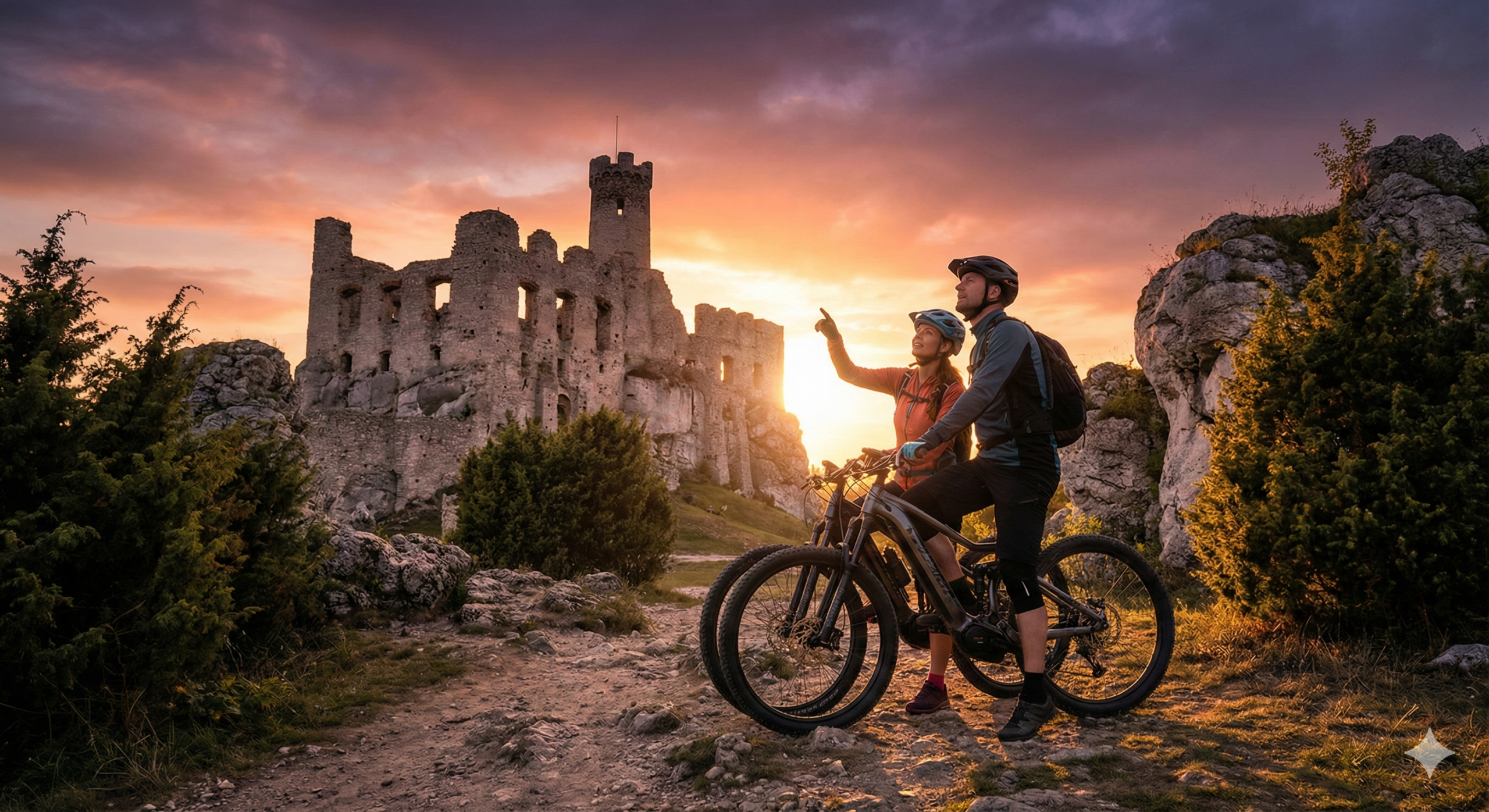 Jesteśmy stąd i pokażemy Ci Jurę, którą kochamy: pełną historii i dzikiej natury. Dzięki naszym e-rowerom wymagające podjazdy i piaszczyste szlaki stają się czystą przyjemnością. Zabierzemy Cię do ukrytych ruin i punktów widokowych, do których inni nie docierają. To przygoda dostępna dla każdego – bez względu na kondycję.