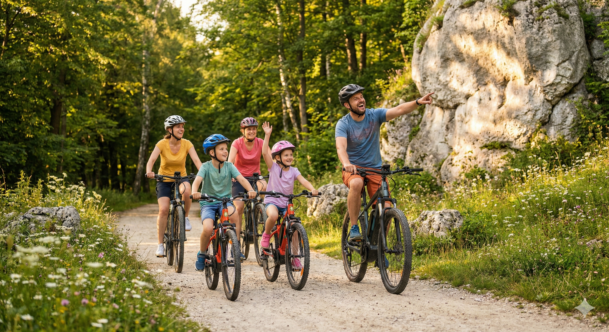 Wspólna wycieczka to najlepszy sposób na budowanie więzi. Dzięki naszym rowerom elektrycznym nikt nie zostaje w tyle – możecie jechać ramię w ramię, rozmawiać i cieszyć się chwilą. Nieważne, czy masz 10, czy 70 lat – e-bike sprawia, że jurajskie szlaki stają się dostępne dla każdego pokolenia. Zamień ekrany telefonów na wapienne skały i spędźcie ten czas naprawdę razem